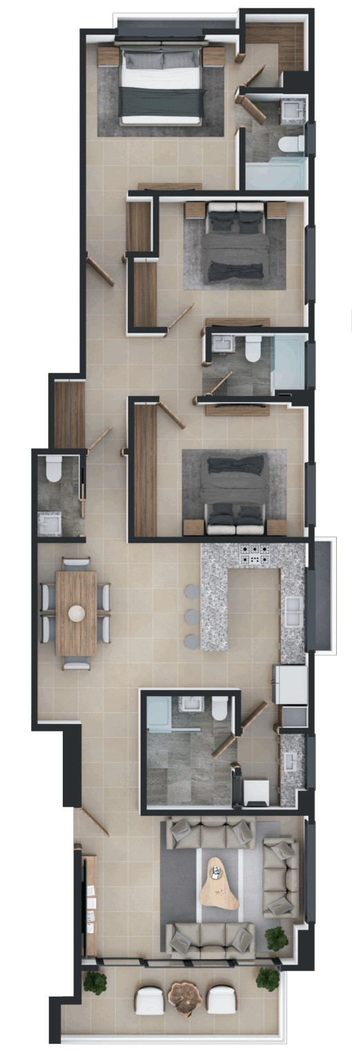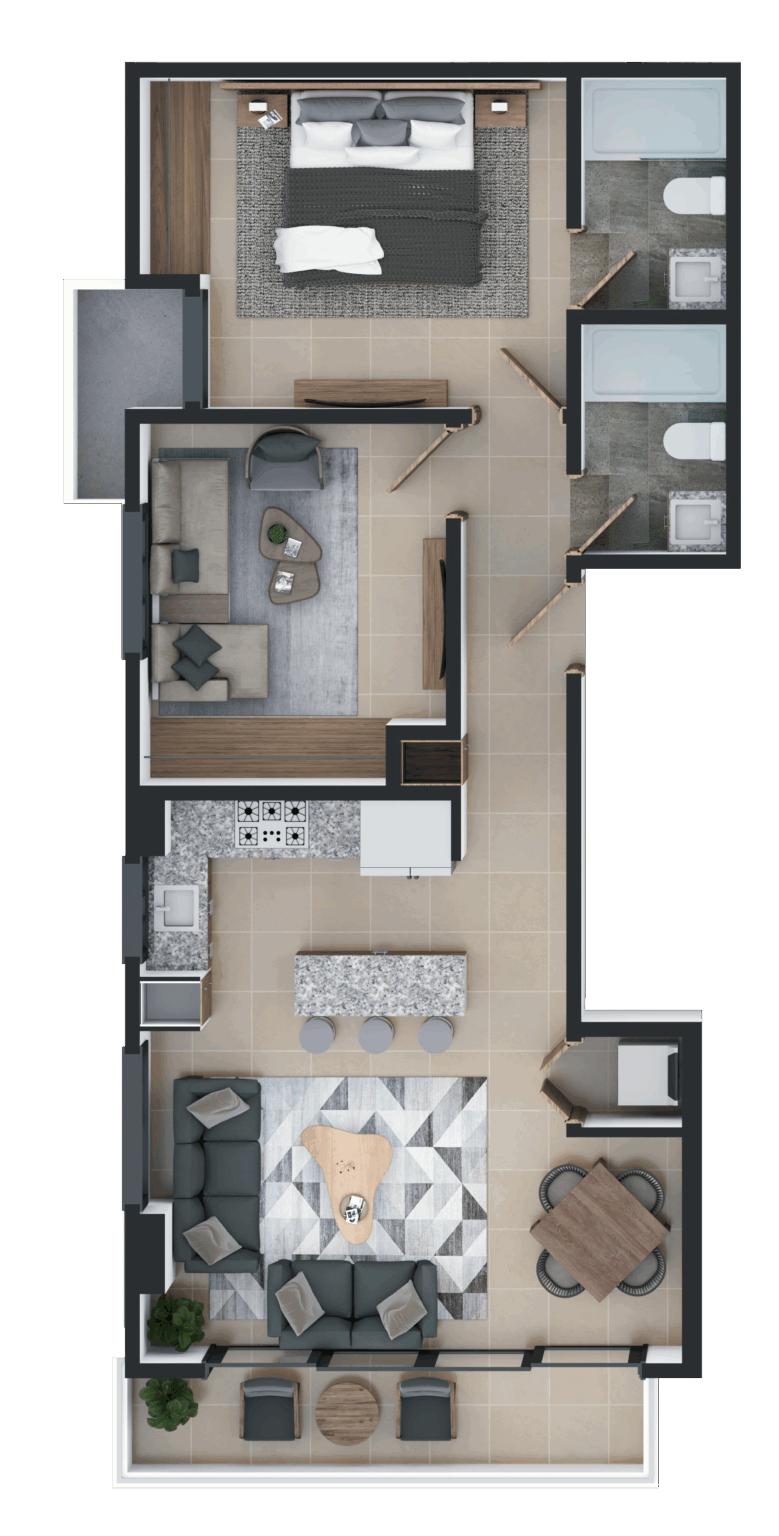 Proyecto exclusivamente familiar con apartamentos de 1 + estudio, 2 y 3 habitaciones.