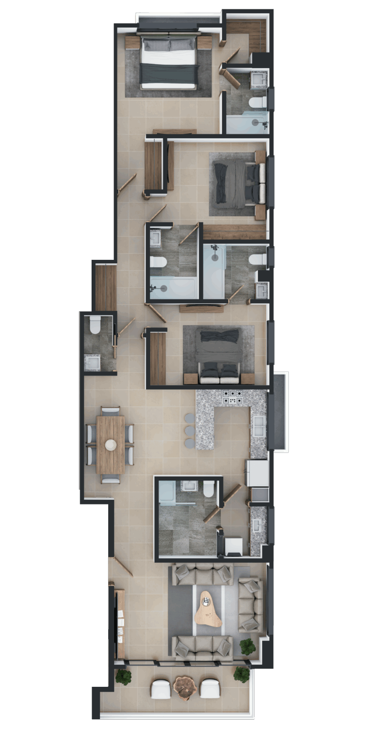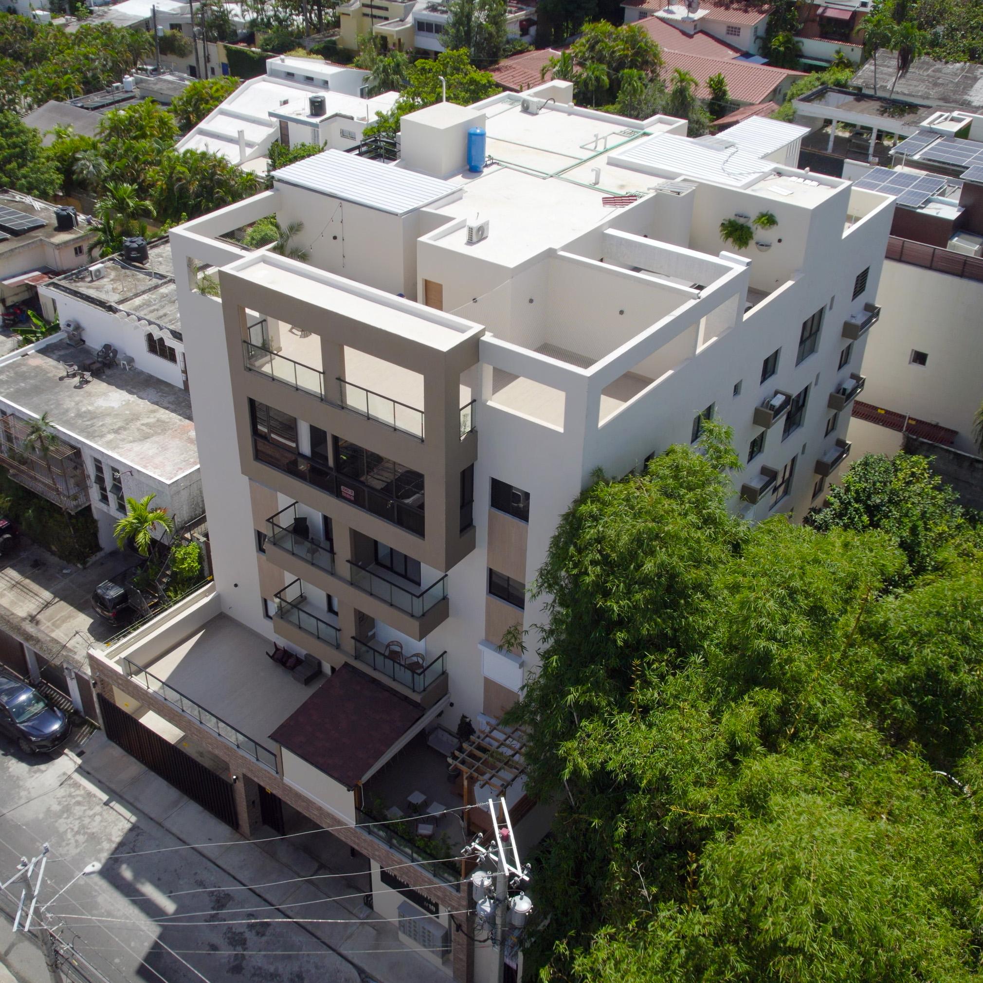 Sol de Evaristo consta con dos niveles de parqueos, siete niveles de apartamentos y un octavo nivel de áreas comunes + terraza.